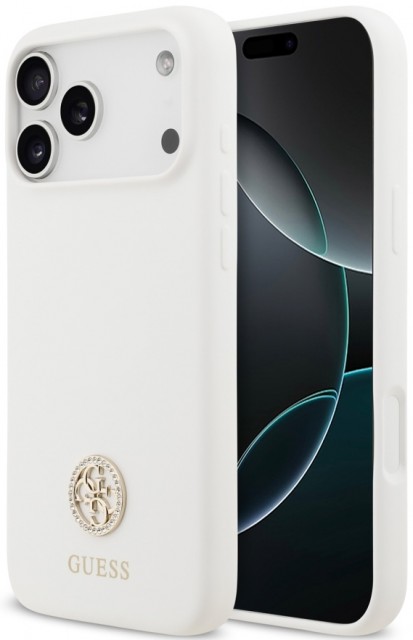 Чехол для iPhone 17 Pro Max Guess Liquid silicone 4G Diamond metal logo (GUHMP17XM4DGPH) White