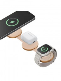 EnergEA AluMag Trio это инновационное беспроводное зарядное устройство нового поколения, созданное для владельцев техники Apple. Выполненное в элегантном алюминиевом корпусе, оно сочетает в себе премиальный дизайн и передовые технологии беспроводной зарядки. Устройство поддерживает стандарт Qi2 и полностью совместимо с MagSafe, обеспечивая быструю и безопасную зарядку мощностью до 15?Вт. Главная особенность AluMag Trio — возможность одновременно заряжать три устройства: iPhone, AirPods и Apple Watch, объединяя их в единую компактную систему. Благодаря складной конструкции зарядное устройство легко брать с собой в поездки, не жертвуя функциональностью. Дополнительным удобством служат встроенные режимы: iPhone Standby и Apple Watch Nightstand, которые превращают процесс зарядки в максимально комфортный и интегрированный в повседневную жизнь ритуал.