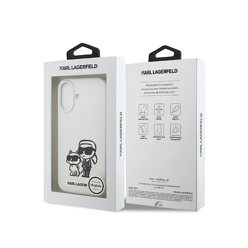 Чехол для iPhone 17 Lagerfeld Sketch Karl&Choupette MagSafe (KLHMP17SSKCGRGOH) White